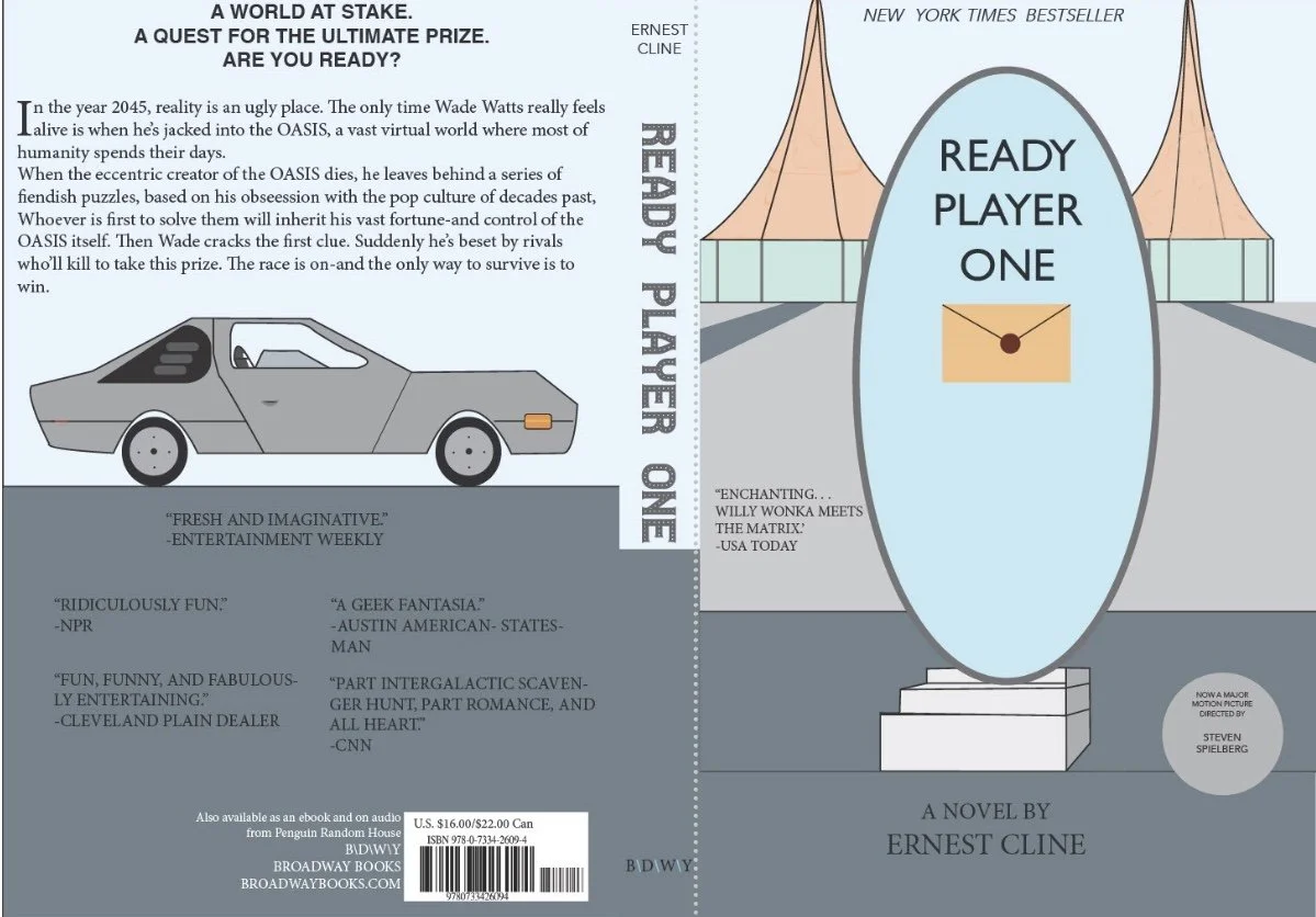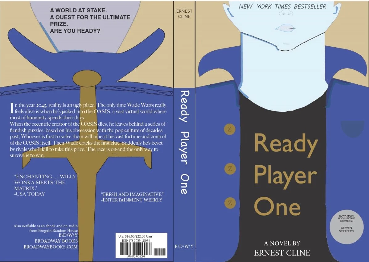 I ultimately chose Ready Player One by Ernest Cline, a book I’ve always appreciated for its deep roots in pop culture. Its wide range of references and vivid descriptions offered me many different choices to focus on in my redesign.